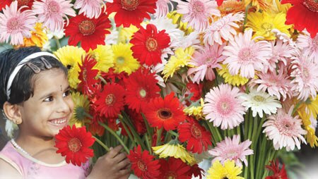 കടുംചുവപ്പുനിറത്തില് വലിയ കശ്മീരി റോസാപ്പൂക്കള്, പത്തിലധികം നിറങ്ങളില് ജര്ബറ, സീനിയ, ഡയാന്തസ്, പെറ്റൂണിയ തുടങ്ങി നമ്മുടെ നാടന് ചെമ്പരത്തികള് വരെ. നിറങ്ങളുടെ സമ്മേളനമാണ് ബീച്ച് മറൈന് ഗ്രൗണ്ടിലെ ഗ്രീന് ഇന്ത്യ റോട്ടറി ഫ്ളവര്ഷോയില്.