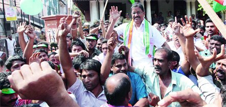 അവസാനവോട്ടും എണ്ണിത്തിട്ടപ്പെടുത്തി ഫലപ്രഖ്യാപനം വന്നപ്പോള് ഒരുമണി കഴിഞ്ഞു. അപ്പോള് പടക്കങ്ങള് തുടര്ച്ചയായി പൊട്ടി. പിന്നെയും പത്തുമിനിറ്റുകഴിഞ്ഞാണ് സ്ഥാനാര്ഥിയെ പ്രവര്ത്തകര്ക്ക് വിട്ടുകിട്ടിയത്. അതോടെ ടൗണ്ഹാള്ഗേറ്റ് തള്ളിമാറ്റി പ്രവര്ത്തകര് സ്ഥാനാര്ഥിയെ തോളിലേറ്റി നഗരത്തിലേക്കിറങ്ങി. നഗരപ്രദക്ഷിണത്തിനുശേഷം ആവേശംചോരാതെ എലത്തൂരിലേക്ക്.