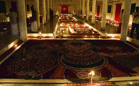കോഴിക്കോട്: ചെരാതിന്റെയും നിലവിളക്കിന്റെയും വെളിച്ചത്തിളക്കത്തില് ദേവതാരൂപങ്ങള് ചൈതന്യത്തോടെ തിളങ്ങി. ഒരാഴ്ച നീണ്ട ദേശീയ ഫോക്ലോര് ഫെസ്റ്റിവലിന് സമാപനം കുറിച്ചുകൊണ്ട് കളങ്ങള് മായ്ക്കുന്നതിനുമുന്നോടിയായായിരുന്നു ഈ ദീപക്കാഴ്ച. വൈകാതെ കളങ്ങള് മായ്ച്ചു. കേരളത്തിന്റെ വിവിധഭാഗങ്ങളില്നിന്നെത്തിയ കലാകാരന്മാരൊരുക്കിയ വര്ണഭംഗികള് ക്യാമറയിലും മിഴിയിലും മനസ്സിലുമൊപ്പിയെടുക്കാന് ഒട്ടേറെപ്പേര് അതിനകം കണ്ടംകുളം ജൂബിലിഹാളില് എത്തിയിരുന്നു.
