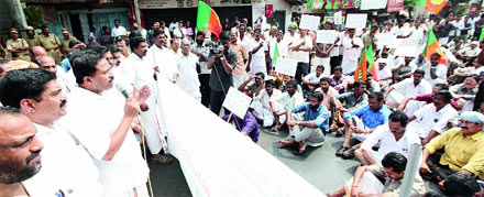 തീവ്രവാദ കേസുകള് അട്ടിമറിക്കാന് യു.ഡി.എഫ്. സര്ക്കാര് ശ്രമിക്കുന്നതായി അദ്ദേഹം ആരോപിച്ചു. മാറാട് കേസില് മുസ്ലിം ലീഗിലെ ചില ഉന്നത നേതാക്കളെ ചോദ്യം ചെയ്യുന്ന ഘട്ടമായപ്പോള് ഉദ്യോഗസ്ഥനെ പിന്വലിച്ചത് ഇതിന് തെളിവാണെന്നും അദ്ദേഹം പറഞ്ഞു. ആദ്യം സി.ബി.ഐ. അന്വേഷണത്തെ എതിര്ത്ത സി.പി.എം. ഇപ്പോള് അനുകൂലിക്കുന്നത് ജനങ്ങളുടെ കണ്ണില് പൊടിയിടാനാണ്. സൈബര് സെല്ലിന്റെ തലപ്പത്ത് ഉദ്യോഗസ്ഥമാറ്റം വരുത്തിയത് ലീഗിന്റെ സമ്മര്ദം മൂലമാണെന്ന് അദ്ദേഹം ആരോപിച്ചു. ബി.ജെ.പി. ജില്ലാ പ്രസിഡന്റ് പി.രഘുനാഥ് അധ്യക്ഷത വഹിച്ചു. സംസ്ഥാന ജനറല് സെക്രട്ടറി കെ.പി.ശ്രീശന്, എ.പി.രാജന്, എം.സി.ശശീന്ദ്രന്, വി.വി.രാജന് എന്നിവര് സംസാരിച്ചു.